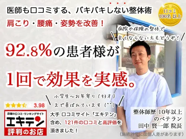 また口コミサイトでも多数の口コミを獲得し、著名人・成功者・医師も通う人気整体院となる。